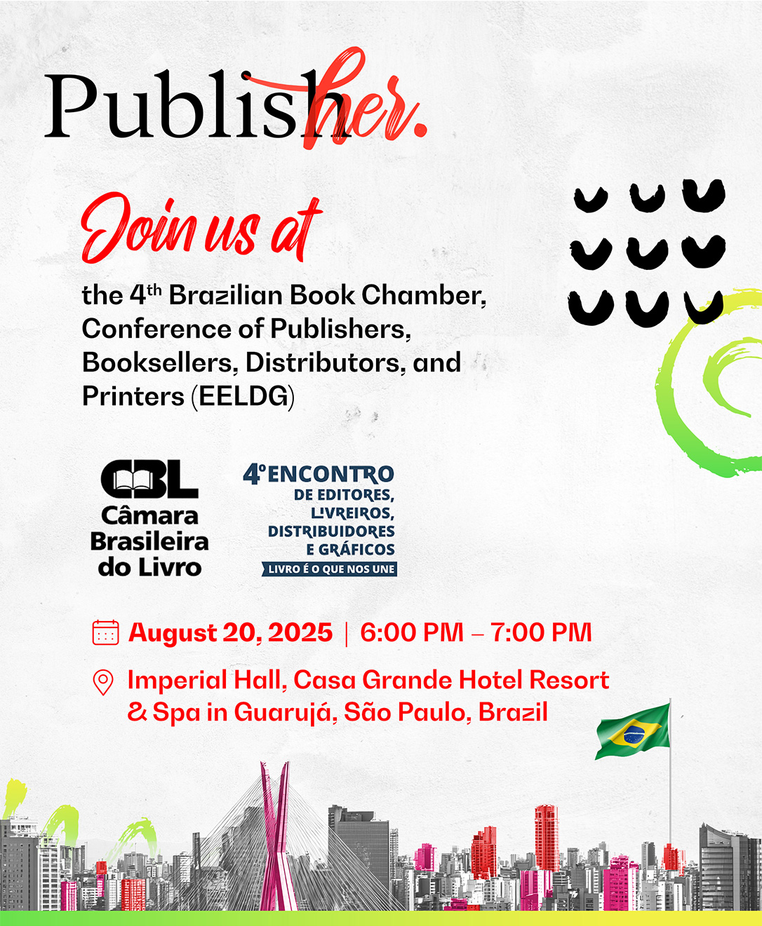 November 2-4, 2025 Sharjah Publishers Conference – PublisHer Lounge Read more October 15-19, 2025 Frankfurt Book Fair – PublisHer Lounge Read more September 15, 2025 PublisHer & NYUSPS Event, New York Read more August 20, 2025 PublisHer Panels at EELDG Conference, São Paulo Read more June 19, 2025 Beijing International Book Fair Read more June 13-22, 2025 Bienal do Livro Rio 2025 Read more Page1 Page2 Page3 Page4 Page5